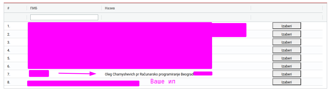 - Opštinu – Општина в которой зарегистрировано ваше предприятие.
