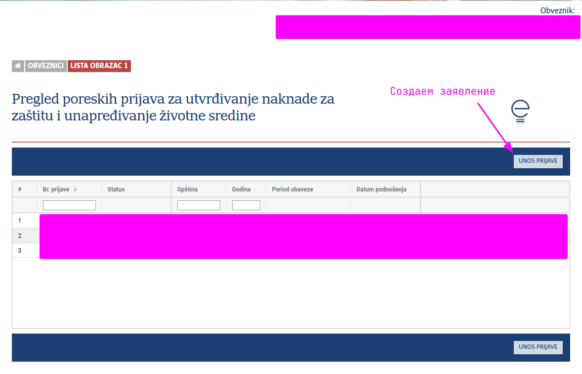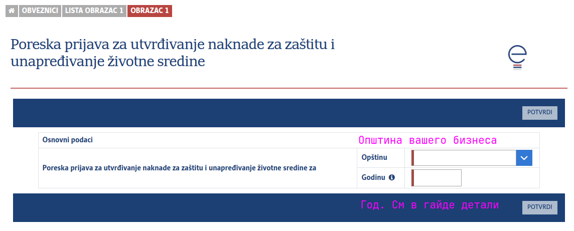 - Нажимаем на Poreska prijava za EKO naknadu. Пример