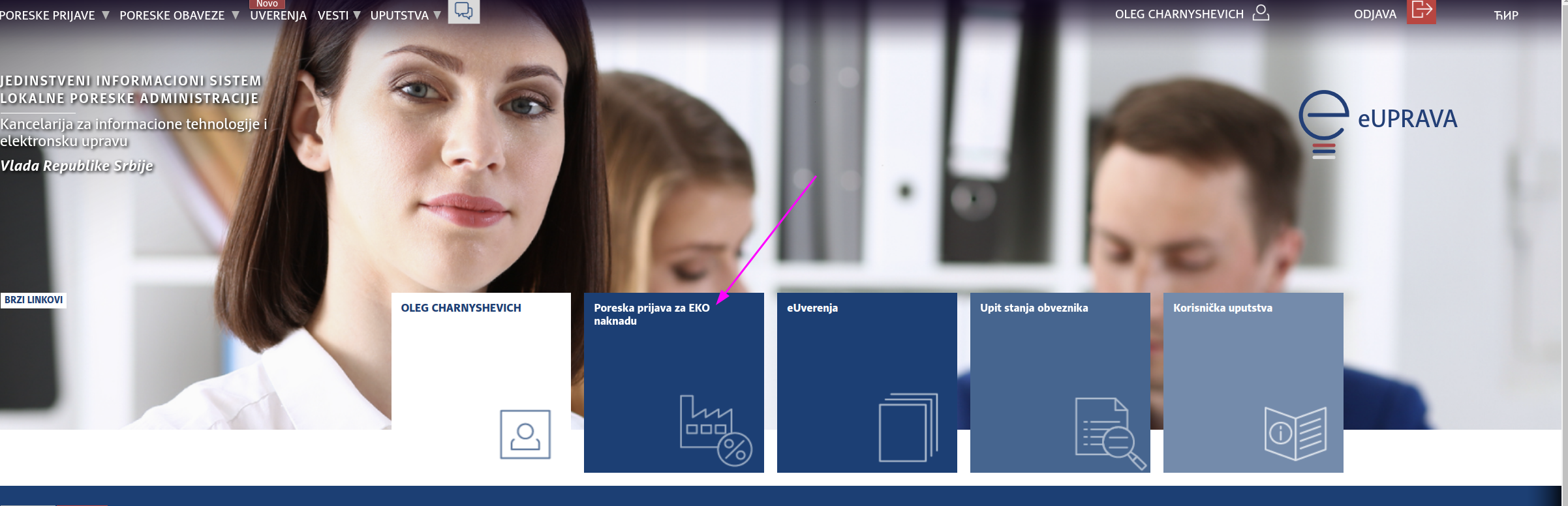 - Заходим на сайт lpa.gov.rs и авторизуемся при помощи