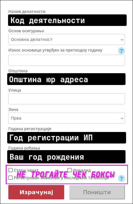 - Все поля заполнять сербской латиницей, а Имя и Фамилию писать как в загран паспорте (англ вариант).
