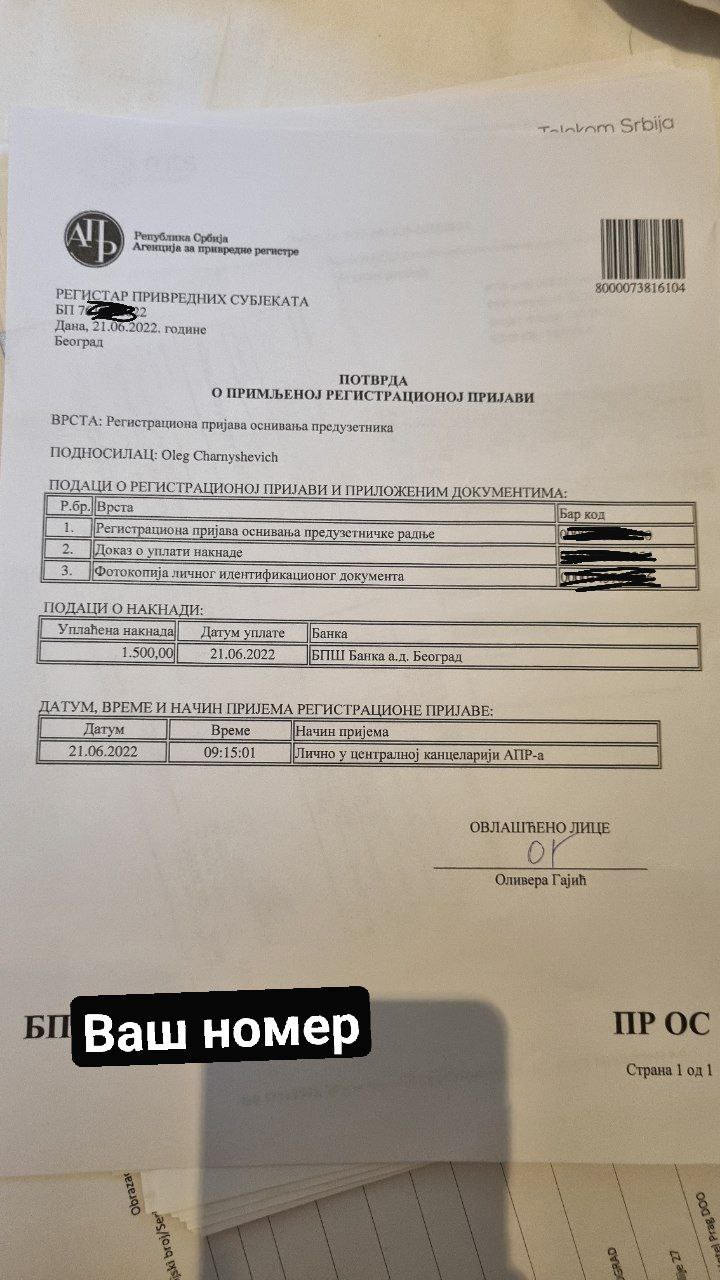 Пример бумаг подтверждающих регистрацию Как только получите бумаги о регистрации ИП, начинайте собирать документы для 🏭 Разрешение на работу aka Радна дозвола, оно обязательно если у вас есть внж в виде налепницы, если внж нет и вы планируете подавать, то разрешение дадут сразу вместе с ВНЖ!
