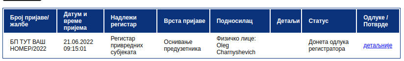 (Опционально) Рекомендую в день когда вы пойдете забирать бумагу подтверждающую регистрацию бизнеса, взять еще и выписку из реестра, выписка понадобится дальше для ВНЖ ака bòravak (Онлайн подача) или (Офлайн подача).