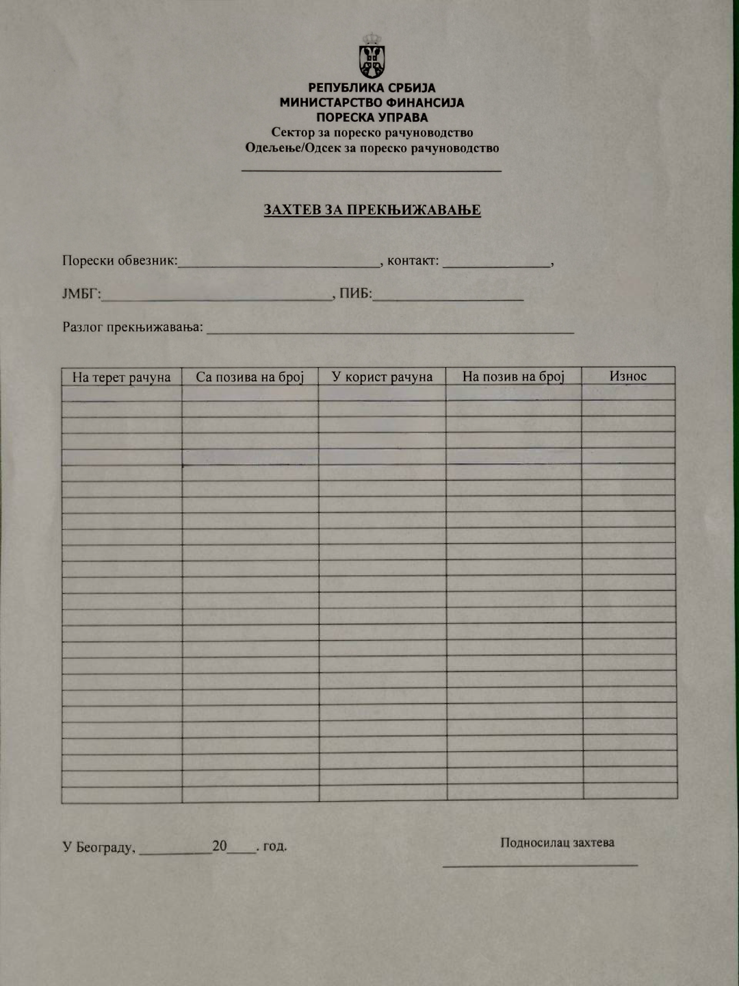 Da li mogu da dobijem obrazac za popunjavanje zahteva za preknjižavanje?