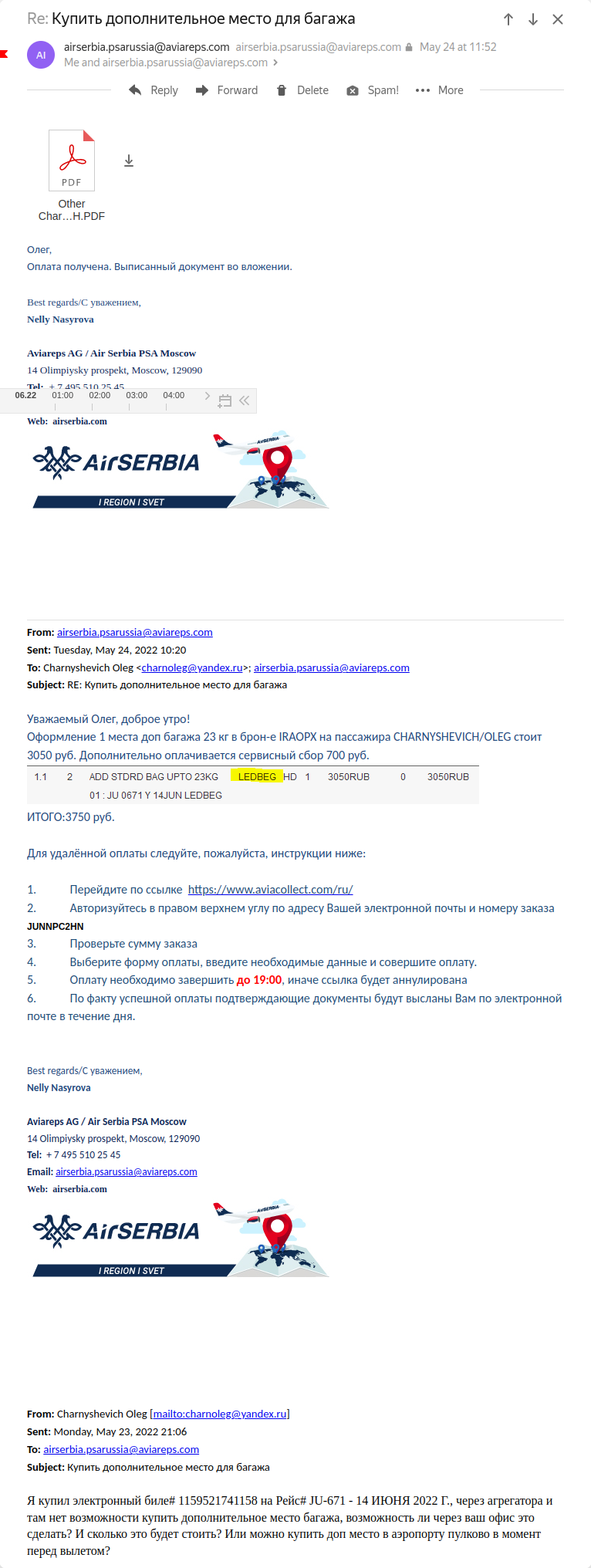 Если вы летите при помощи Air Serbia то можете оплатить доп услуги например: купить доп место багаж, просто написав им в свободной форме на email (airserbia.psarussia@aviareps.com) свою заявку вместе с данными билета.