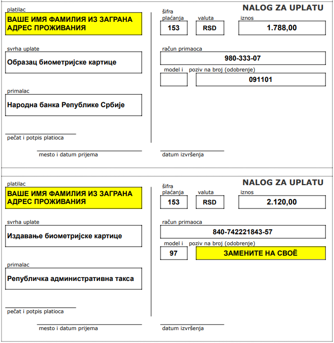 - Перед походом в МУП вам нужно оплатить пошлины за сдачу биометрии. В Белграде вы не можете оплатить пошлину на месте!
